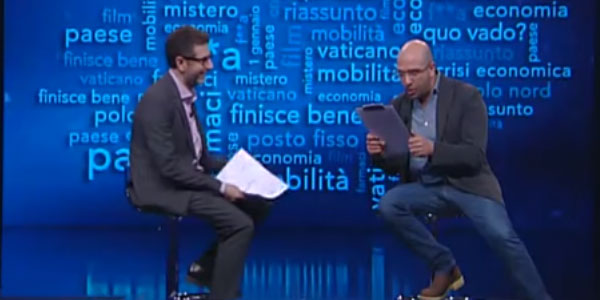 Checco Zalone protagonista indiscusso a "Che tempo che fa". Il comico si infila gli occhialini, assume una posa con la mandibola e si china sulla cartellina: l'imitazione di Massimo Gramellini è presto fatta
