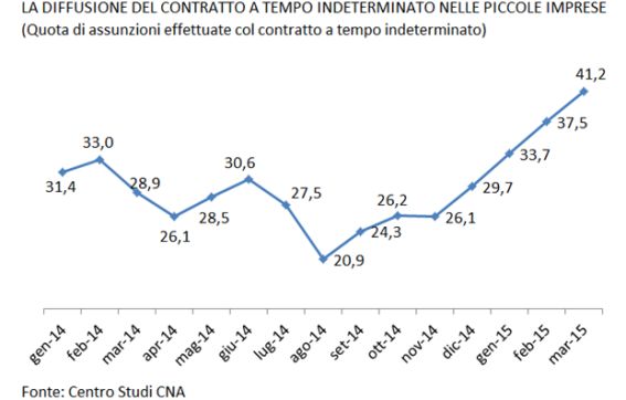 I dati di marzo sono relativi alle piccole e medie imprese e evidenziano che su 3.245 nuovi posti, 1.337 sono a tempo indeterminato
