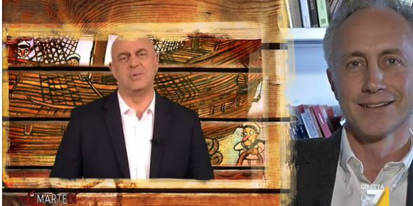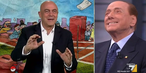 Il comico su La7 ironizza sulla nomina di Calenda a capo del Mise per poi commentare la vicenda di Livorno insieme a Di Maio