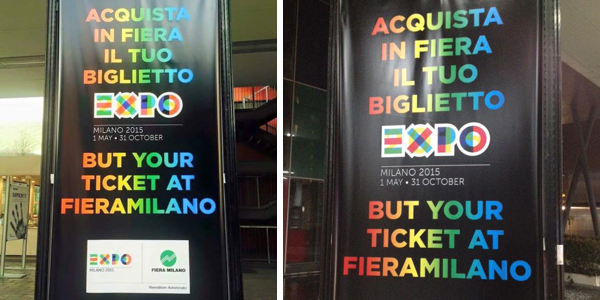 Un errore da matita blu che gli organizzatori hanno tardivamente corretto apponendo una toppa sulla "t". "Compra il tuo biglietto" è diventato "Tranne il tuo biglietto", uno svarione di grosse proporzioni che non è sfuggito ai passanti