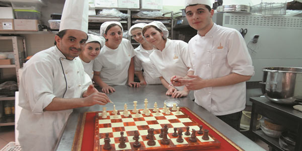 Nicola Fiasconaro, omaggerà allo scacchista Antonio Ingroia un’opera in cioccolato interamente realizzata dalle maestranze (nella foto) della sua azienda e decorata dall’artista castelbuonese, Francesco Baio. Per la realizzazione della scacchiera il cioccolato è stato lavorato a freddo con una tecnica tipica dei cioccolatieri delle valli modicane