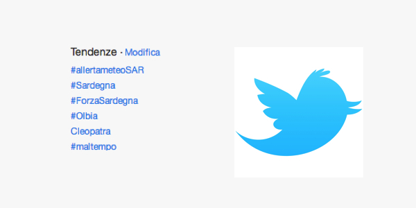 Il popolo virtuale italiano resta virtualmente vicino alla popolazione Sarda e su Twitter i principali trend sono quasi completamente rivolti a loro