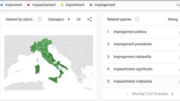 In milioni hanno voluto sapere cosa fosse l'impeachment che Di Maio e la Meloni chiedevano per Mattarella ma sulla tastiera digitavano impingement