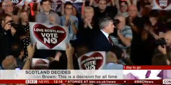 L’ex premier britannico Gordon Brown ha chiuso la campagna per il no al referendum scozzese, sostenendo che “la Scozia non appartiene ai nazionalisti, ai politici, ad Alex Salmond, ma appartiene a noi”