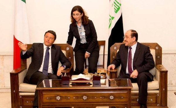 Il presidente del Consiglio italiano ha incontrato il premier uscente al Maliki nel palazzo presidenziale dentro la zona verde. Il suo saluto non soltanto a nome del governo italiano, ma anche in qualità di guida del semestre europeo