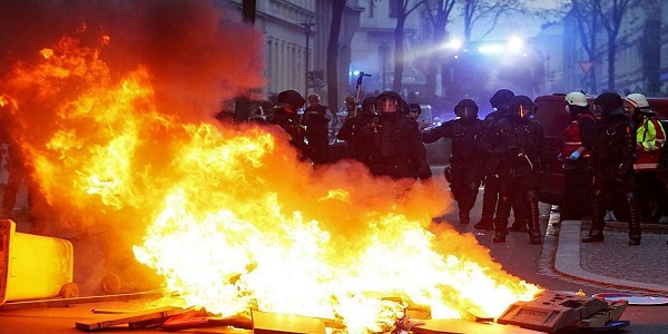 Decine di persone hanno danneggiato edifici e bruciato veicoli. Alla manifestazione partecipavano esponenti di estrema destra