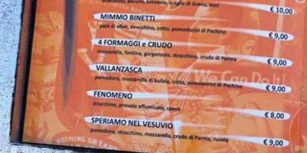un menu molto particolare “Speriamo nel Vesuvio”: una pizza ‘indigesta’ | La polemica corre sui social e il titolare “ripara”