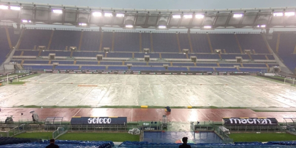 La pioggia che si è abbattuta sullo Stadio Olimpico ha costretto l'arbitro Banti a rinviare la gara a data da destinarsi
