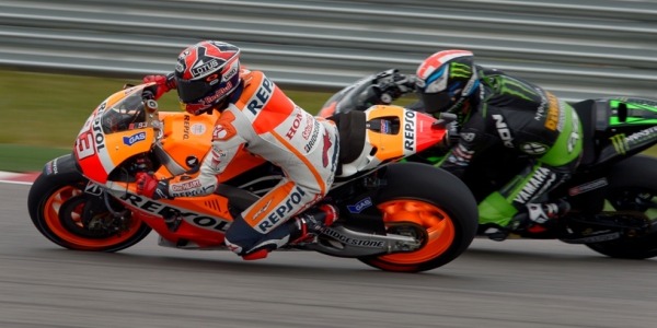 Marquez squalificato per errore di ingresso al cambio gomme. Infatti al giro dieci era previsto il cambio moto obbligatorio poiché la Bridgestone non poteva garantire la sicurezza dlela gomma posteriore oltre il decimo. Ne approfitta lo spagnolo che si rilancia