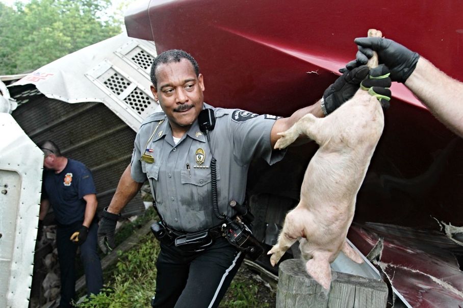 Molti porcellini sono scappati nei boschi vicino alla carreggiata dov'è avvenuto l'incidente