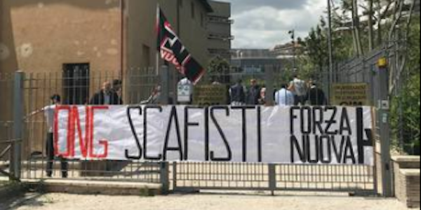Alcune decine di manifestanti, denuncia l'organizzazione, hanno occupato lo spazio esterno della struttura e hanno appeso uno striscione contro le Ong, accendendo fumogeni e urlando slogan contro l'immigrazion