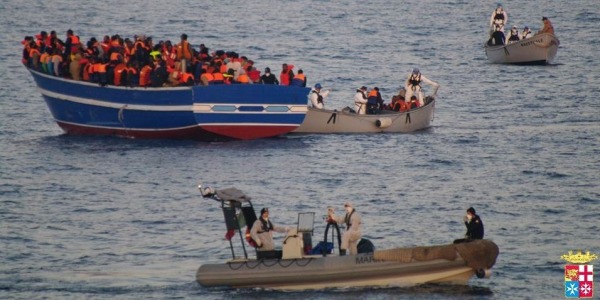 La nave San Marco, la nave Foscari e tre motovedette della guardia costiera hanno operato per tuta la notte, traendo in salvo più di mille migranti