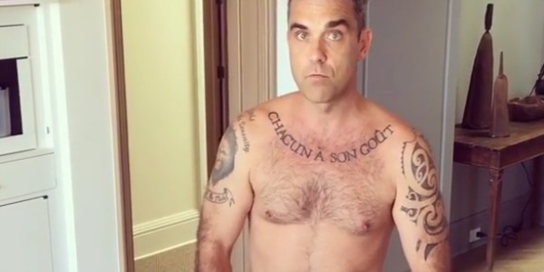 Un augurio di Buon Natale particolarmente hot arriva da Robbie Williams, che ha postato su Instagram uno scatto senza veli con un albero sullo sottofondo e la didascalia: "Chi vuole un bacio sotto il vischio?"