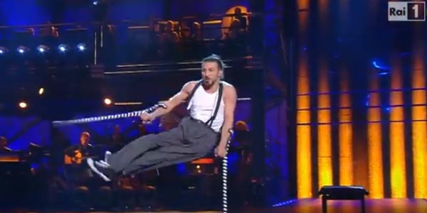 Durante la terza serata del Festival di Sanremo, sul palco dell'Ariston si esibisce Dergin Tokmak, un danzatore e acrobata strepitoso capace di "volare"