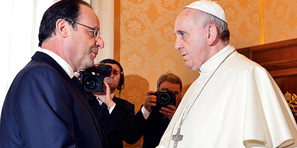 la prima volta del presidente francese alla santa sede Hollande incontra Papa Francesco | Dopo l’esplosione, aumenta la sicurezza