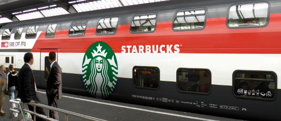 Viaggiare in treno sorseggiando il caffè della coffe house più conosciuta al mondo. Adesso è possibile, almeno se si frequenta la Svizzera. La trovata delle ferrovie svizzere e di Starbucks prenderà vita il 21 novembre con dei vagoni-caffetteria a due piani, precedentemente destinati a bistrò, sui treni Intercity 2000.