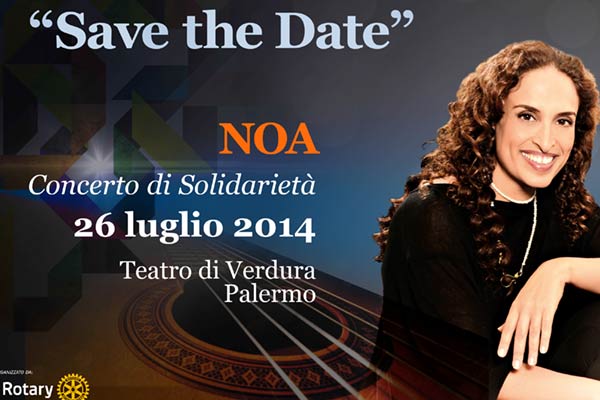 Palermo si prepara ad un grande evento: sabato 26 luglio, alle ore 21.15, al Teatro di Verdura arriva il concerto di solidarietà della cantante israeliana Noa, accompagnata dalla sua band: ecco “Save the date”, lo spettacolo organizzato dal Distretto 2110 del Rotary
