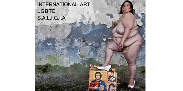 Gli organizzatori del movimento per la libertà omosessuale hanno scelto la foto di una donna sovrappeso e nuda che calpesta un'immagine religiosa: le polemiche non si sono fatte attendere così come le repliche