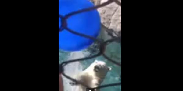 Stava giocando con il frisbee quando gli cade nel recinto allo zoo di Albuquerque. A prenderlo è un orso bianco che evidentemente sa come si gioca con il disco azzurro che gli arriva in acqua