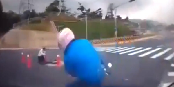 Se pensate di aver avuto una brutta giornata, non avete ancora visto questo video: il filmato, girato a Taiwan, è stato ripreso dalla telecamera fissa posizionata su un’autovettura, la stessa macchina che, nello svoltare a destra, tampona uno scooter il cui conducente cade