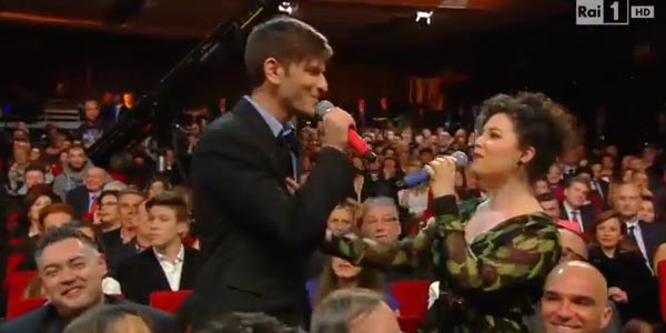 Sembrava una contestazione e invece... Nella terza puntata del Festival di Sanremo, dalla platea qualcuno "disturba" dicendo che questo è il festival della canzone, mica dell'arte, e inizia a cantare