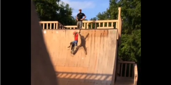 Il padre che spinge il figlioletto di soli 6 anni dalla rampa di skate perché ha paura: il filmato è stato inizialmente messo online con l’intento di strappare un sorriso, ma di divertente c’è ben poco