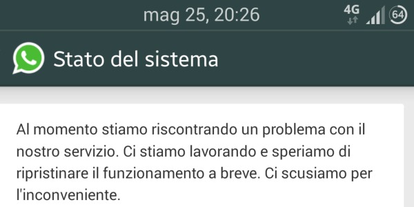 Oggi, domenica 25 maggio, WhatsApp non funziona nuovamente: il problema sembra essere riscontrato soltanto da alcuni utenti e lo status del sistema conferma il malfunzionamento